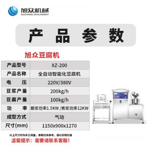 XZ-300型气动压榨豆腐机,智能豆腐豆浆机,双桶煮浆高效生产现磨现煮,浆渣分离快速出浆。机器运行稳定不锈钢材质打造,坚固耐用,安全卫生,时尚大方,易于清洗。