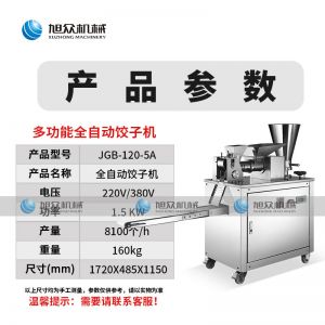 名称120-5A饺子机 电源220/380v 功率1.5kw 产量8100个/h 尺寸1720*485*1150mm 重量160kg 规格15-20g/个 其他