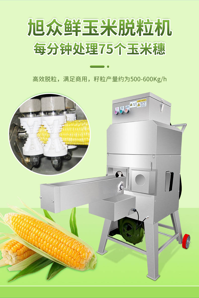XZ-T138玉米脱粒机,鲜玉米脱粒机,高效脱粒。用于新鲜甜糯玉米脱粒工作,能很方便地把籽粒与梗杆分离。入料方便、脱净率高、不碎粒不烂芯。每分钟处理75个玉米穗。高效脱粒,满足商用,籽粒产量约为500-600Kg/h