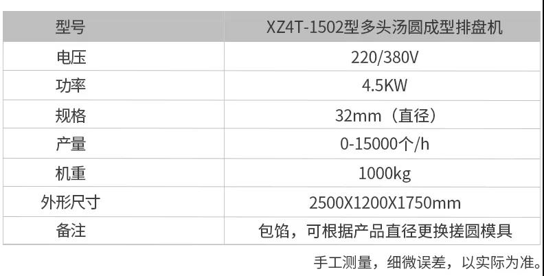 XZ4T-1501型多功能搓圆排盘机是一款只要将面团放入进料口,开机便可自动搓圆、成型的设备,制品不易变形,工作效率高,相当于15-20个工人同时手工制作汤圆,并可自动排盘,真正的低投入、高收效,省钱省工。